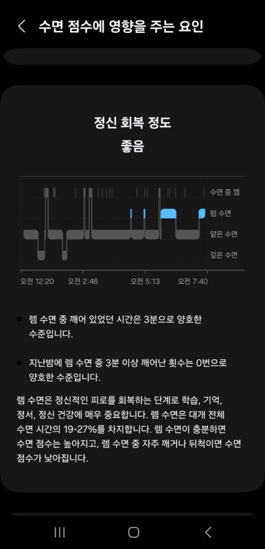 직접적인 비교를 안해봐서 최신의 기기들과의 차이가 어떤지 모르겠지만, 저는 개인적으로 이번 갤럭시핏3의 수면 측정은 만족하는 편입니다.