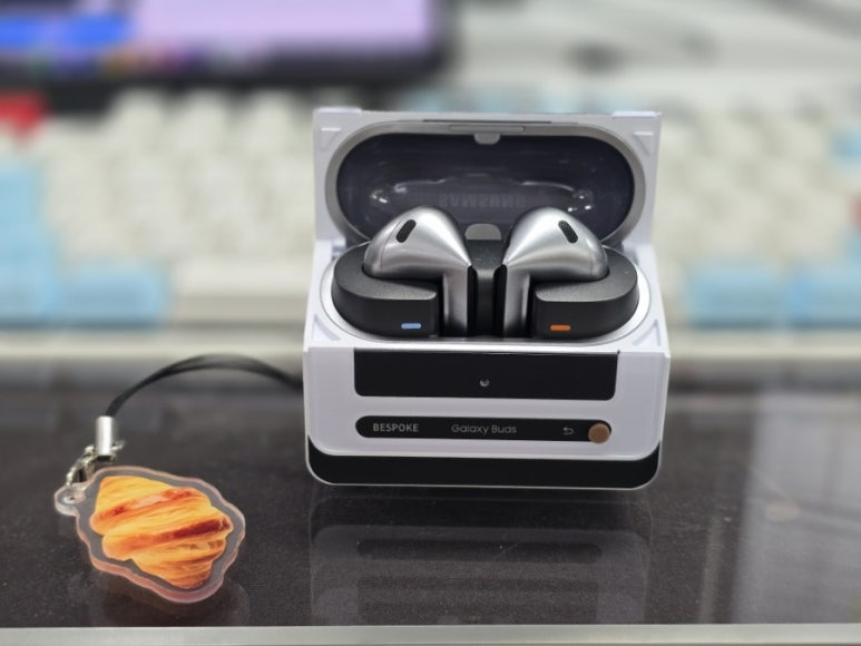 세워서 사용하는 게 버즈3 케이스 본연의 방식인만큼, 비스포크 큐커 케이스는 거기에 잘 어울린다는 느낌인데요. 대신 충전단자도 바닥에 있고, 무선 충전도 눕혀서 해야하다 보니 누워있는 비스포크 큐커의 모습을 자주 보게 됩니다.