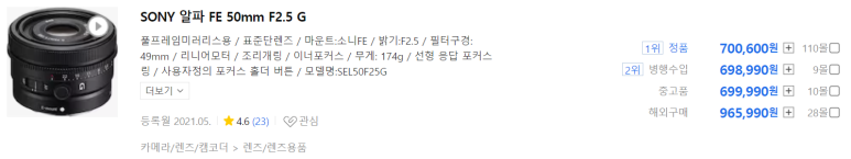G트리오 단렌즈 중에서 수요가 가장 높아서인지 신품 가격도 제일 높거든요.