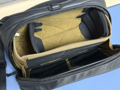 지금은 A7C2와 2070G 조합을 사용중이다 보니 딱 맞게 들어가고 내부 공간도 살짝 남는 느낌인데요. 예전에 A7M4와 2470GM2 조합일 때는 이거 하나 넣으면 다른 건 거의 넣을 수 없는 느낌이었습니다. 지갑도 못 넣고 스마트폰도 못 넣고요. 넣을 순 있는데 덮개 부분에 얹어놓는 식이다 보니까 여차하면 앞으로 쏟아질 것 같다는 걱정도 될 정도였습니다. 물론 생각보다 견고하기 때문에 딱 적당한 수준까지만 열리고요. 실제로 물건들이 앞으로 쏟아진 적도 없었습니다.