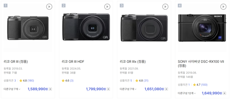 - 단렌즈: 리코 GR3, 후지필름 X100VI