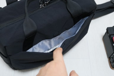 이걸 통해 내부 공간을 분리할 수 있는데, 파티션으로 나눠 놓고 내 주력 장비인 A7CR과 2450G 렌즈를 수납해도 파티션 분리가 가능하고 나머지 공간에 지갑과 파우치 등등을 넣을 공간이 남는다. 더군다나 상단 공간이 텅텅 비게 되는데, 좀 더 타이트하게 공간을 활용하고자 한다면 70200G2 정도 사이즈 되는 망원렌즈는 세워서 보관할 수도 있을 것으로 보인다.