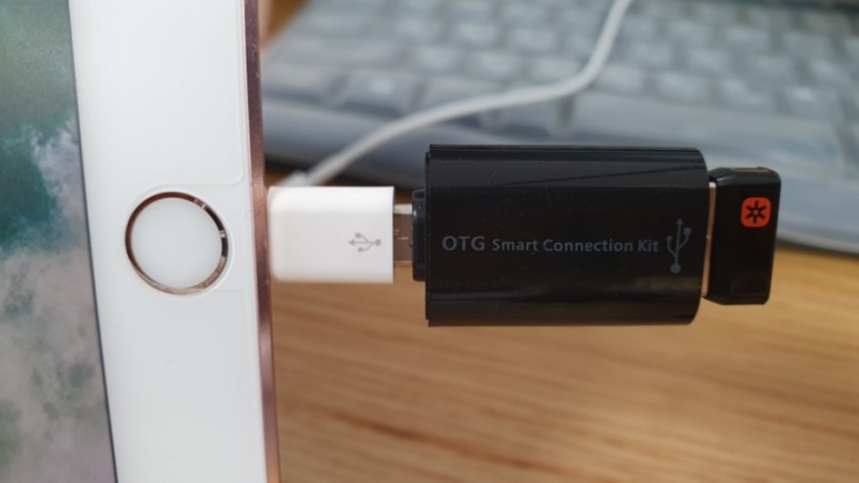 자 이제 이 괴상한 물건 끝에 USB 동글까지 연결해서 아이패드에 연결해보자.
