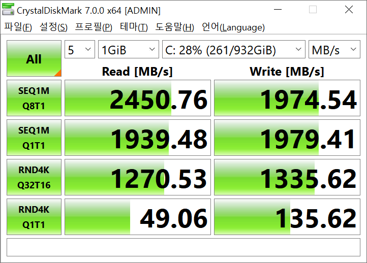 내가 기존에 쓰던 게 읽기/쓰기 속도가 평균 500정도 나왔다면, 이 제품은 평균 2500정도 나온다.
