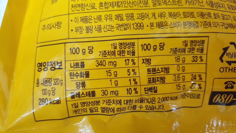 총 8개 들어있으니까 4개씩 두 번 나눠 먹으면 한 번에 160g을 먹는 셈이다.
