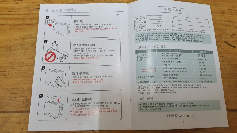 위메프에서 할인해서 구매한 텀스 토스터기다. 평상시에는 5~6만원에 파는데 이때 1만원 대에 판매하고 있어서 횡재하는 기분으로 구매했다.